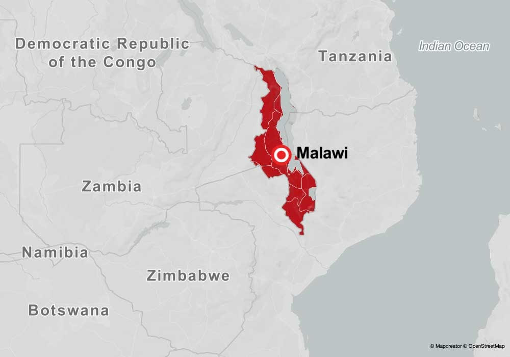Malawi is a landlocked Southeastern African country, approximately the size of the U.S. state of Pennsylvania, surrounded by Tanzania to the north, Mozambique to the east, and Zambia to the west.