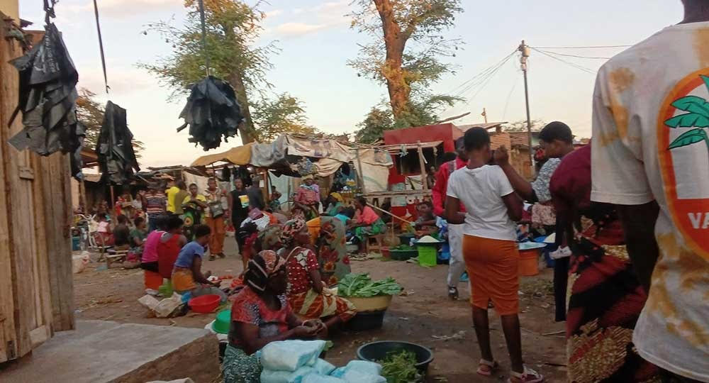Late in the afternoon, traders and buyers are busy at the market. This is Karonga market off the Karonga-Chitipa Road. Image by Raphael Mweninguwe
